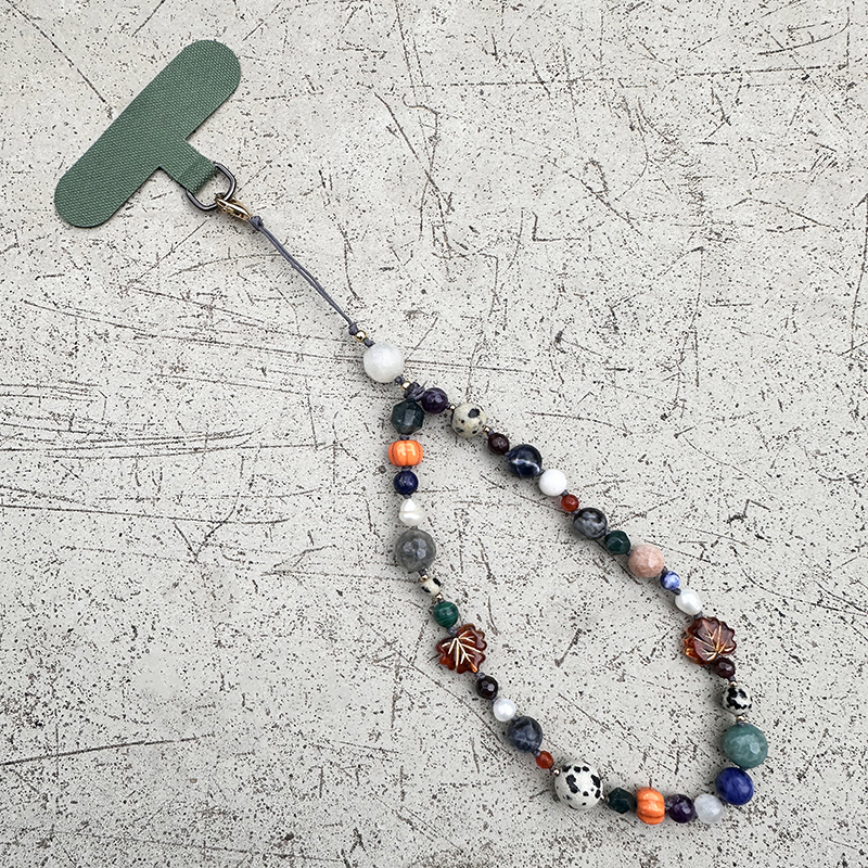 Unikalny, ręcznie wykonany breloczek z naturalnych kamieni z motywem elementów dyni oraz liści, który doda Twojemu telefonowi wyjątkowego charakteru. Dodatkowo dodatkowe zapięcie do przyczepienia breloczka do torby.