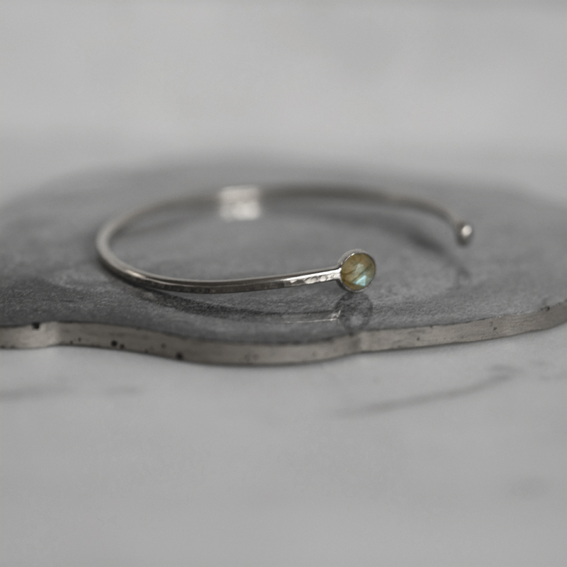 Cienka bransoletka obręcz z labradorytami z najwyżej jakości srebra pr.925.