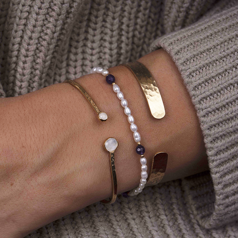 Cienka bransoletka obręcz z labradorytami z najwyżej jakości srebra złoconego 24-karatowym złotem.