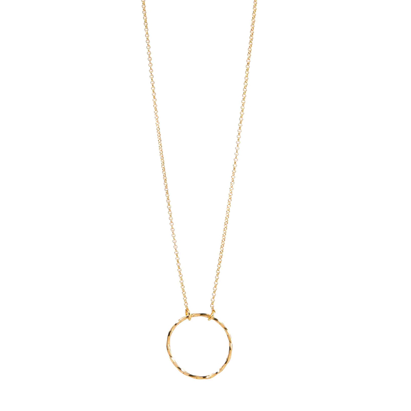 Delikatny naszyjnik z kółeczkiem - karmą wykonany ze srebra 925 złoconego 14k złotem o grubości 2 mikronów, zapinany na karabińczyk.