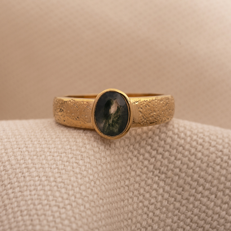 Z radością prezentujemy nasz najnowszy model pierścionka POLLY OVAL z agatem mszystym, który łączy w sobie wyjątkowe wzornictwo i najwyższą jakość. Każdy pierścionek wykonujemy ze srebra próby 925 złoconego o grubości 2 mikronów, co zapewnia nie tylko trwałość, ale również elegancję.