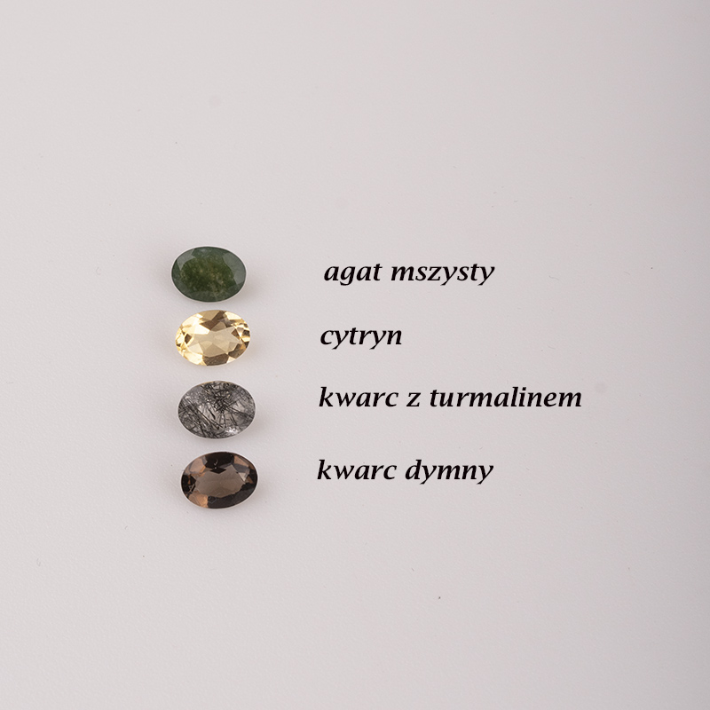 W naszej kolekcji znajdziesz kamienie takie jak: oliwin, cytryn, ametyst, topaz London Blue / Swiss lub biały, granat, kwarc z turmalinem, kwarc dymny / czarny szafir – każdy z nich w szlifie fasetowanym, co zapewnia im niesamowity blask i głębię.