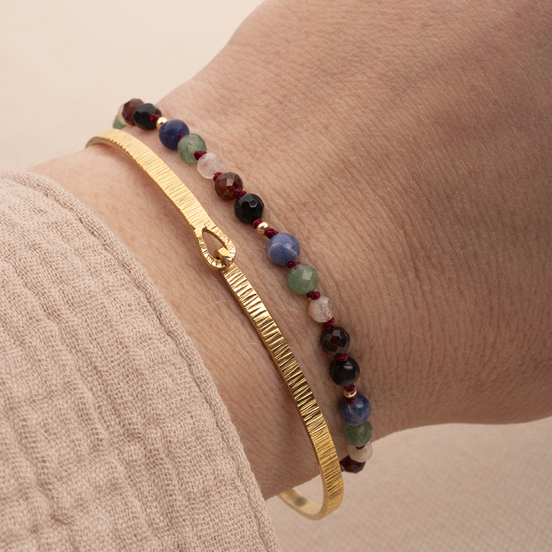 Zestaw dwóch bransoletek: mini BANGLE (obręcz) oraz z kamieni naturalnych Essence Energy, recznie wykonane ze srebra próby 925 złoconego na 2 mikrony.