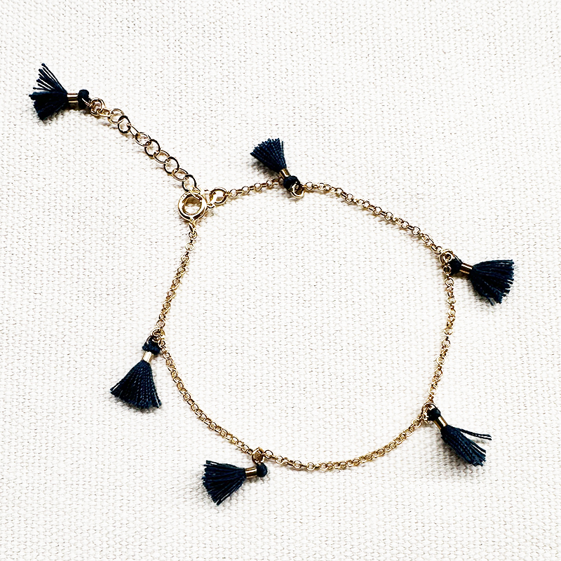 Bransoletka na łańcuszku z zielonymi chwostami (kolor zielonej butelki) wykonana ze srebra pr.925 złoconego z regulacją.